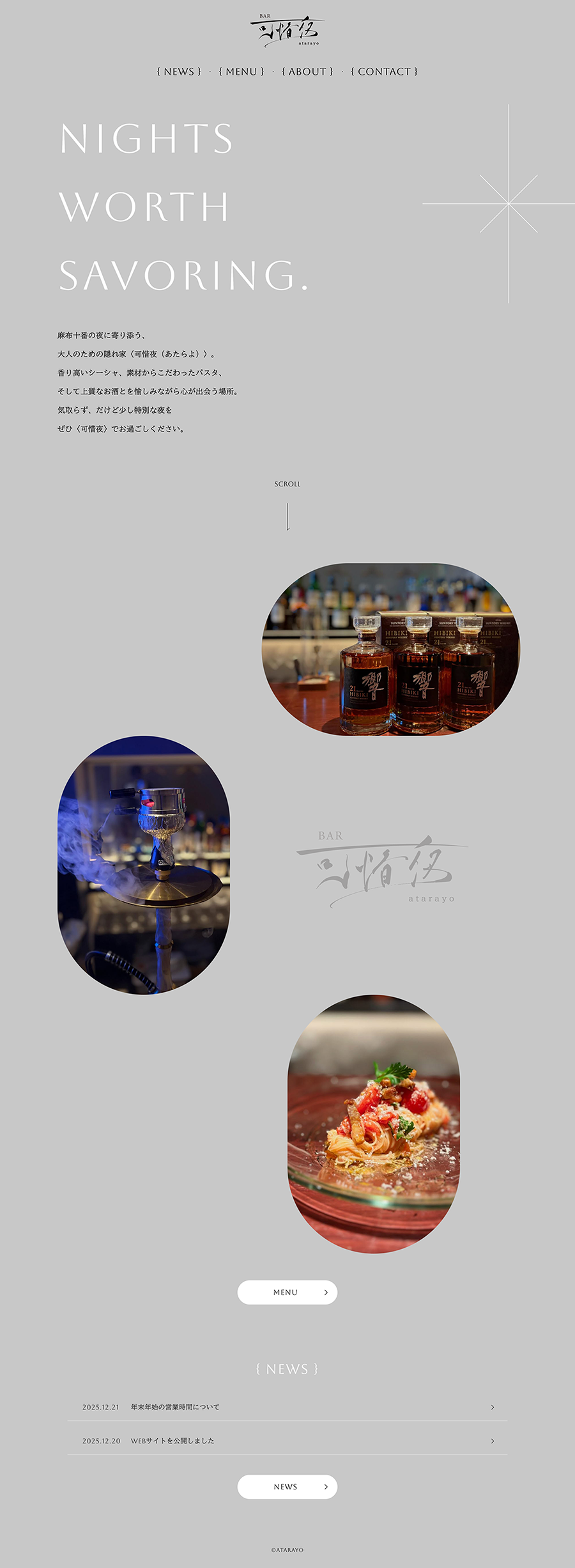 Bar 可惜夜(あたらよ)のWEBサイトを公開しました。